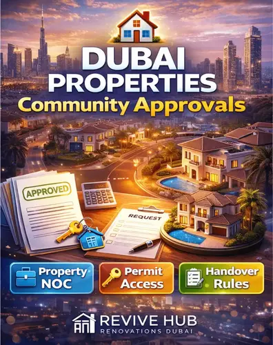 Dubai Properties approvals and renovation NOC guide cover image by Revive Hub Renovations Dubai