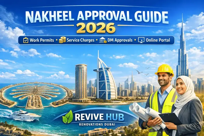 Nakheel renovation approval Dubai dashboard for community approval meaning, work permits, Dubai Municipality triggers, Nakheel Online services, service charge payments, security complaints, and the clean sequence that reduces delays.